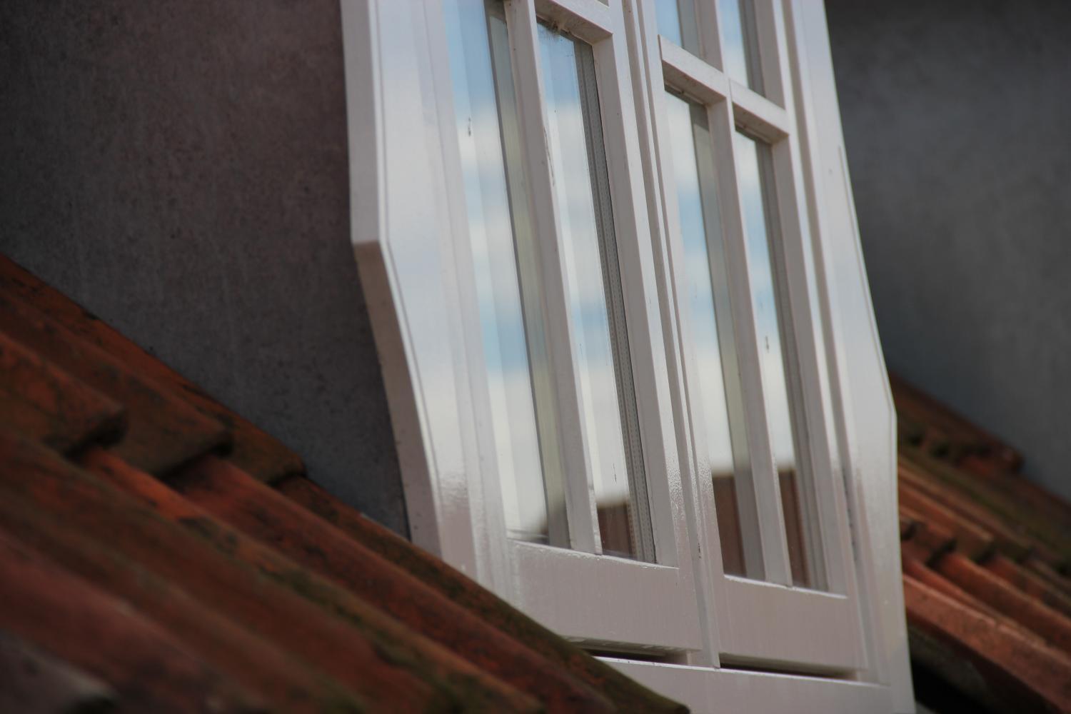 Door gebrek aan onderhoud was de staat van de twee dakkapellen dermate slecht dat we de woning hebben voorzien van twee nieuwe. Omdat het om een oude woning gaat hebben we de dakkapellen ook in de oude style opgebouwd. De zijwangen zijn bekleed met zink en het dak heeft een overstek met rondom een geprofileerde lijst. Het dak is bekleed met kunststof dakbedekking en is afgewerkt met een zinken kraal. De binnenzijde van de dakkapellen zijn betimmerd met houten kraaldelen en de ramen zijn afgemonteerd met nostalgisch hang- en sluitwerk.